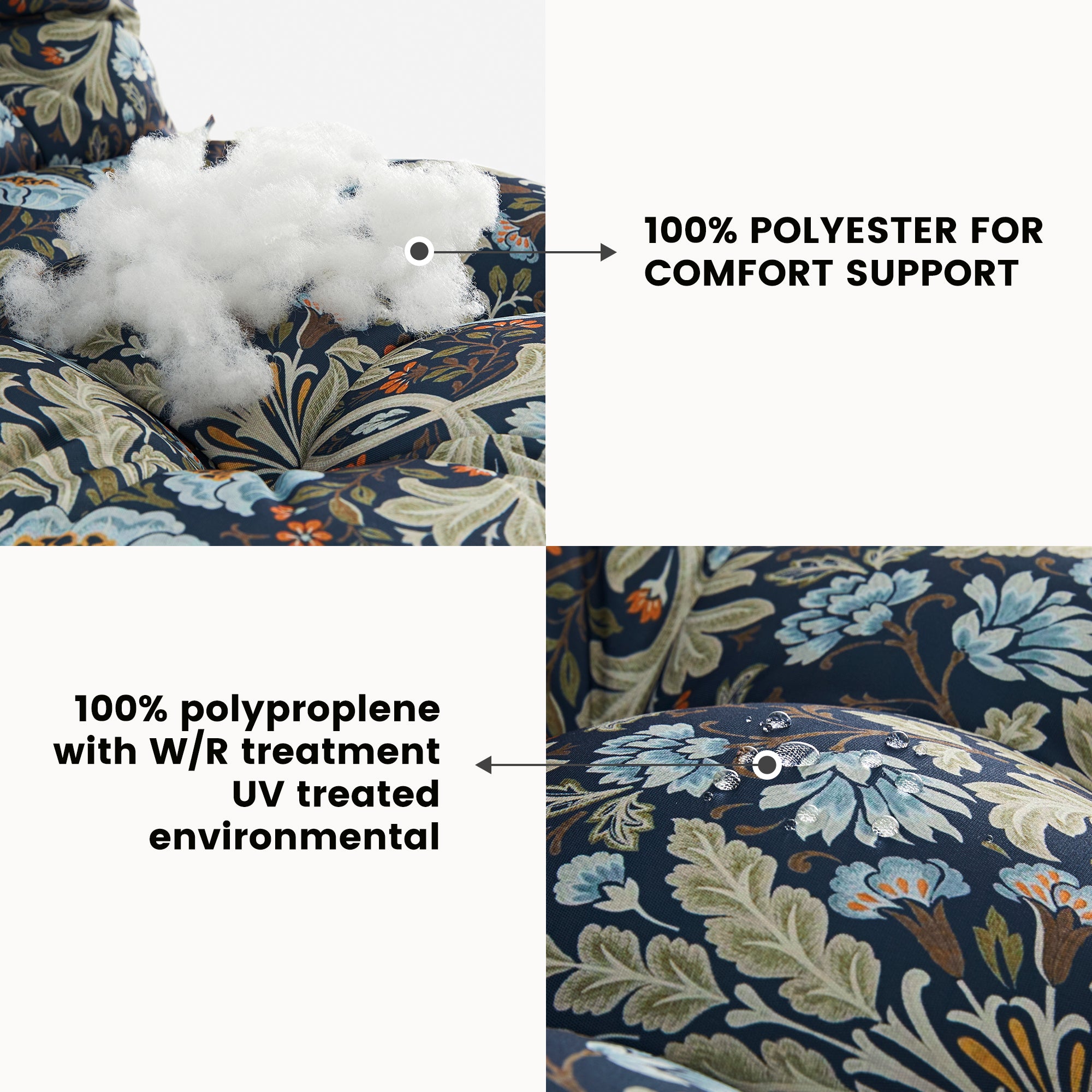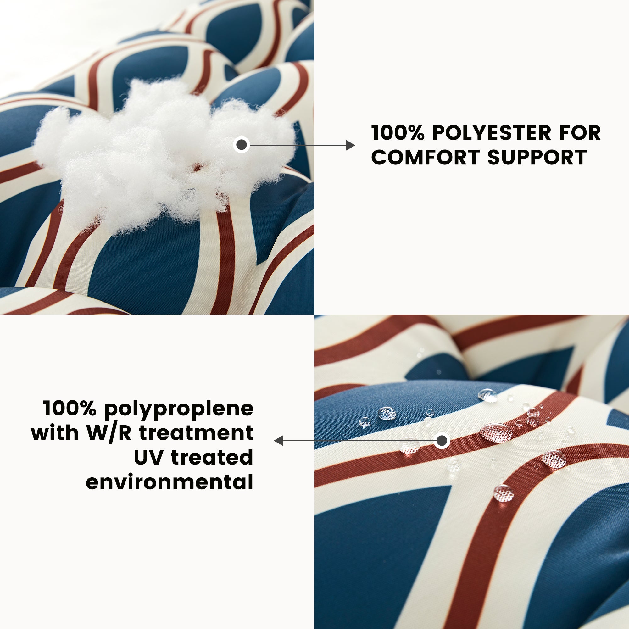 Made from weather-resistant, fade-proof fabrics designed for long-lasting comfort.