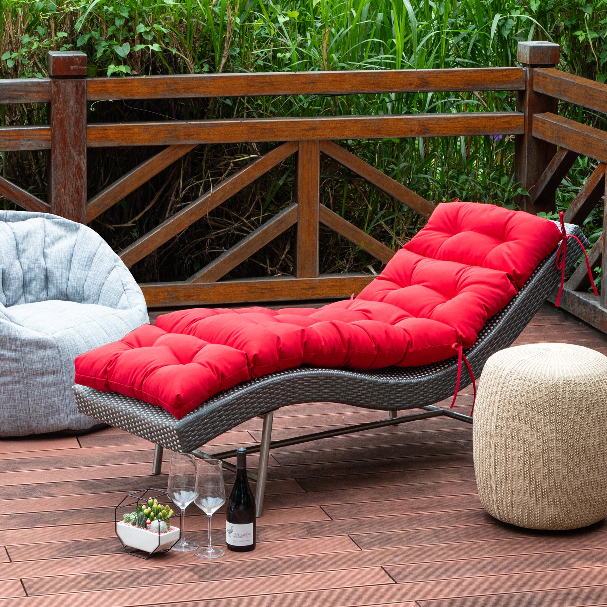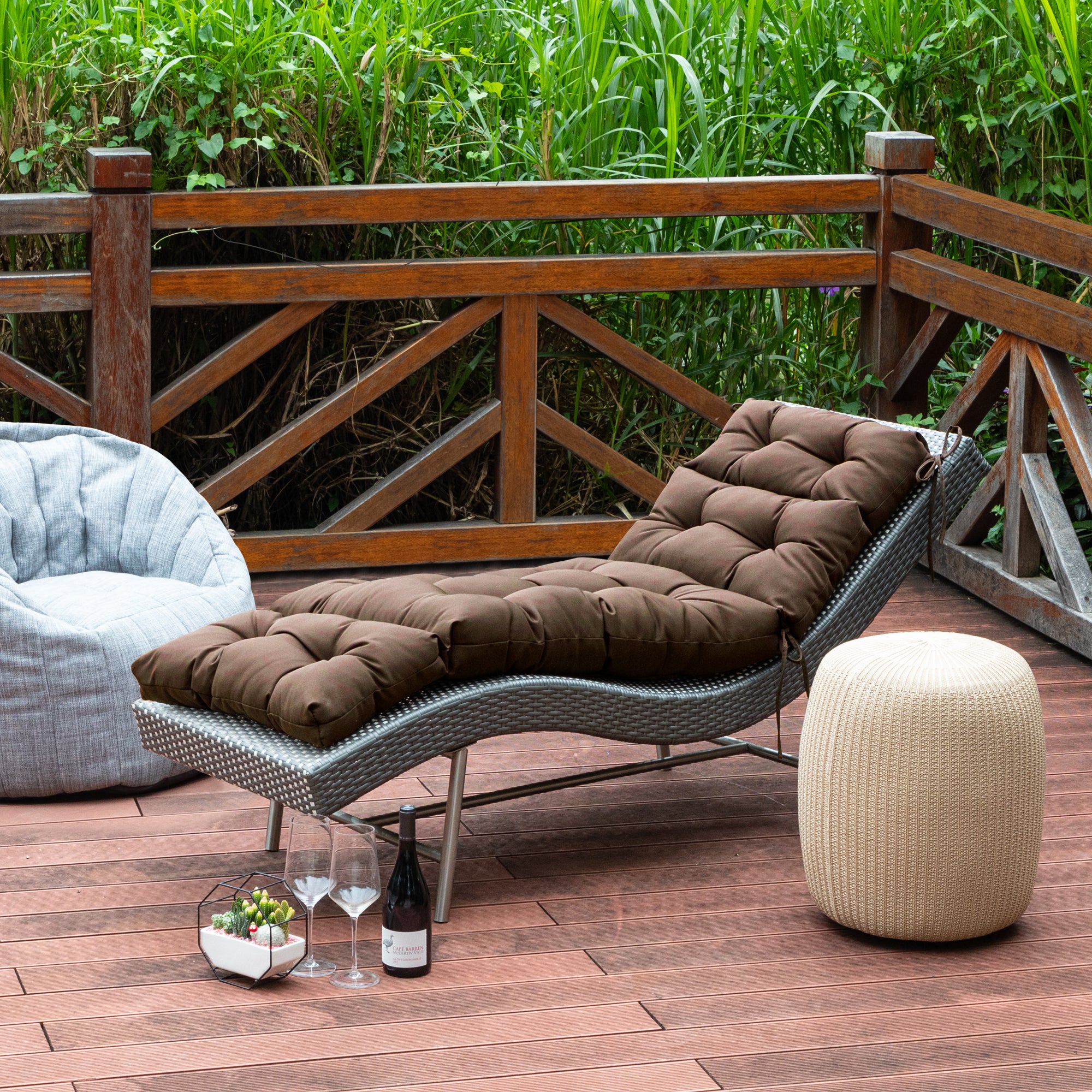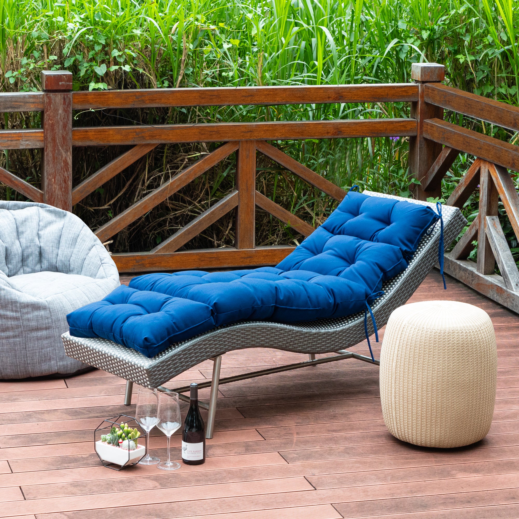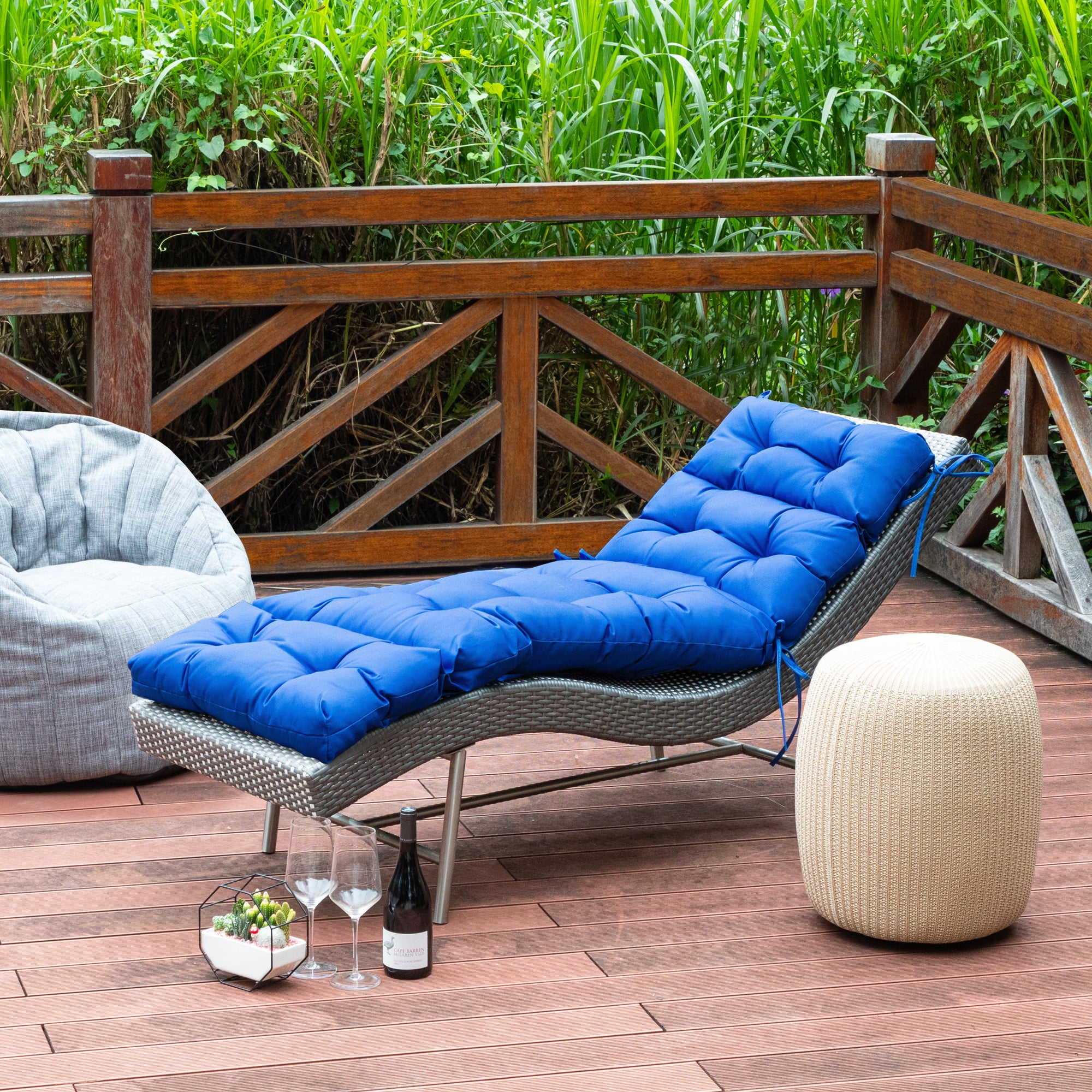 Outdoor Chasie Lounge Tufted Thick Cushion with Ties