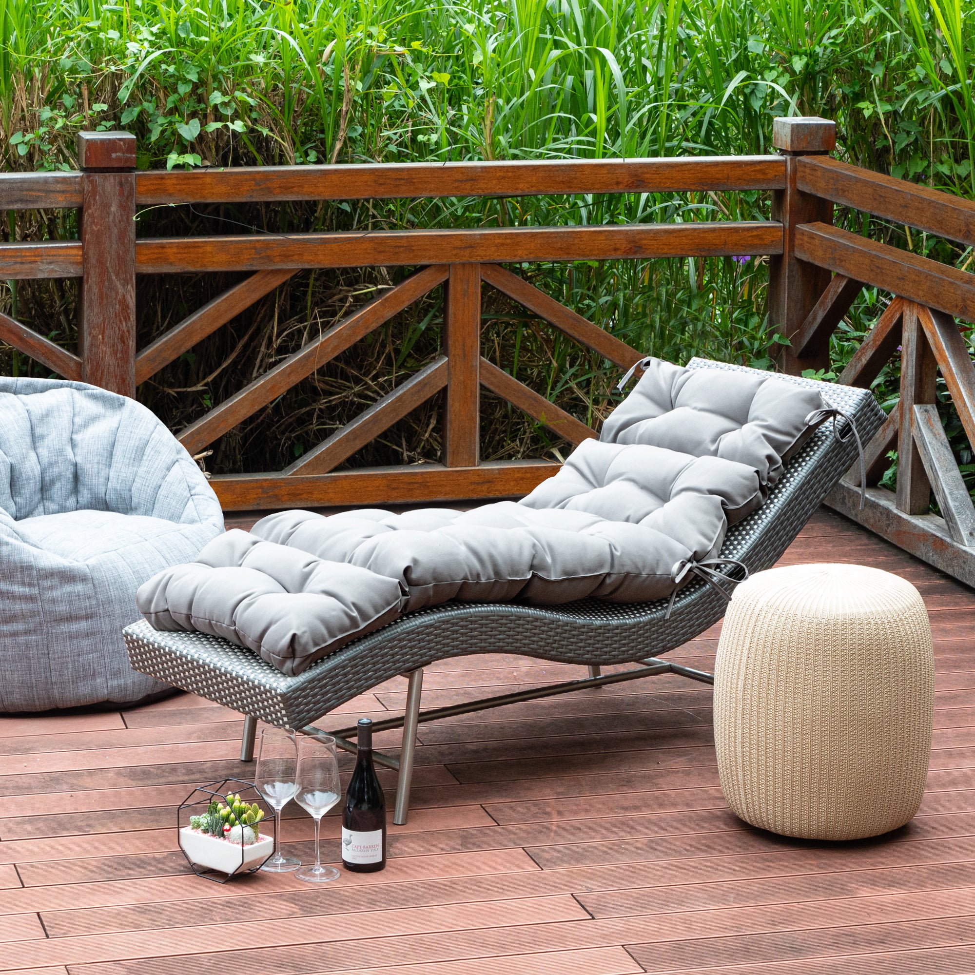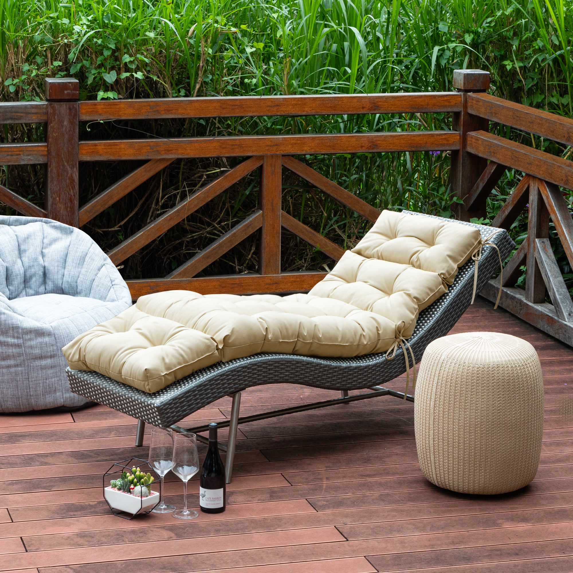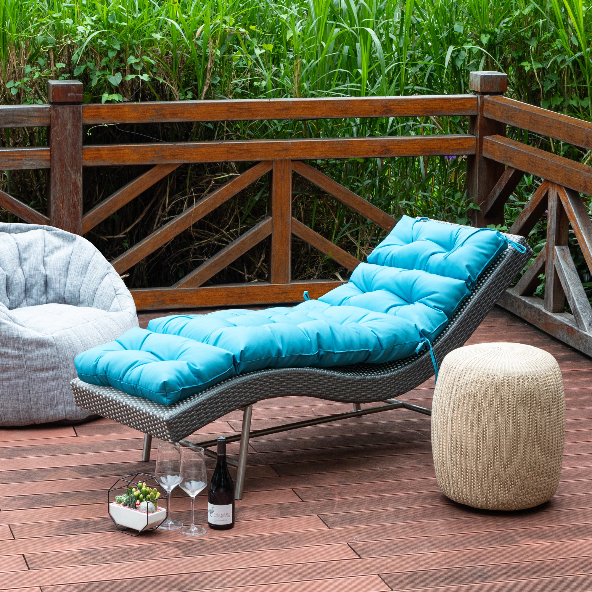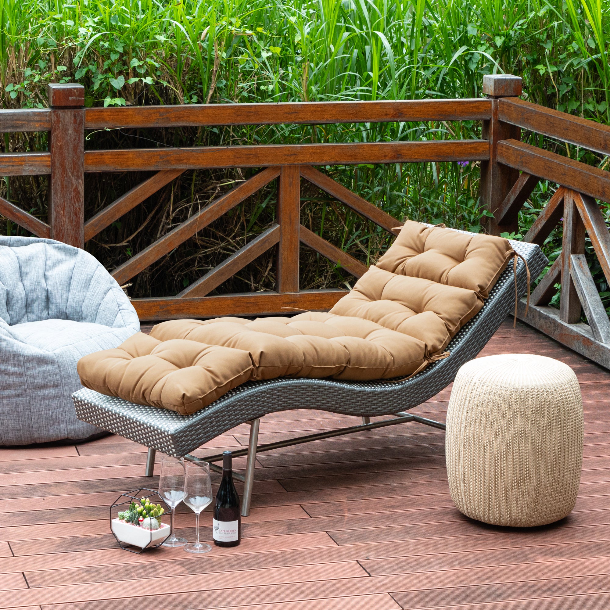 Outdoor Chasie Lounge Tufted Thick Cushion with Ties