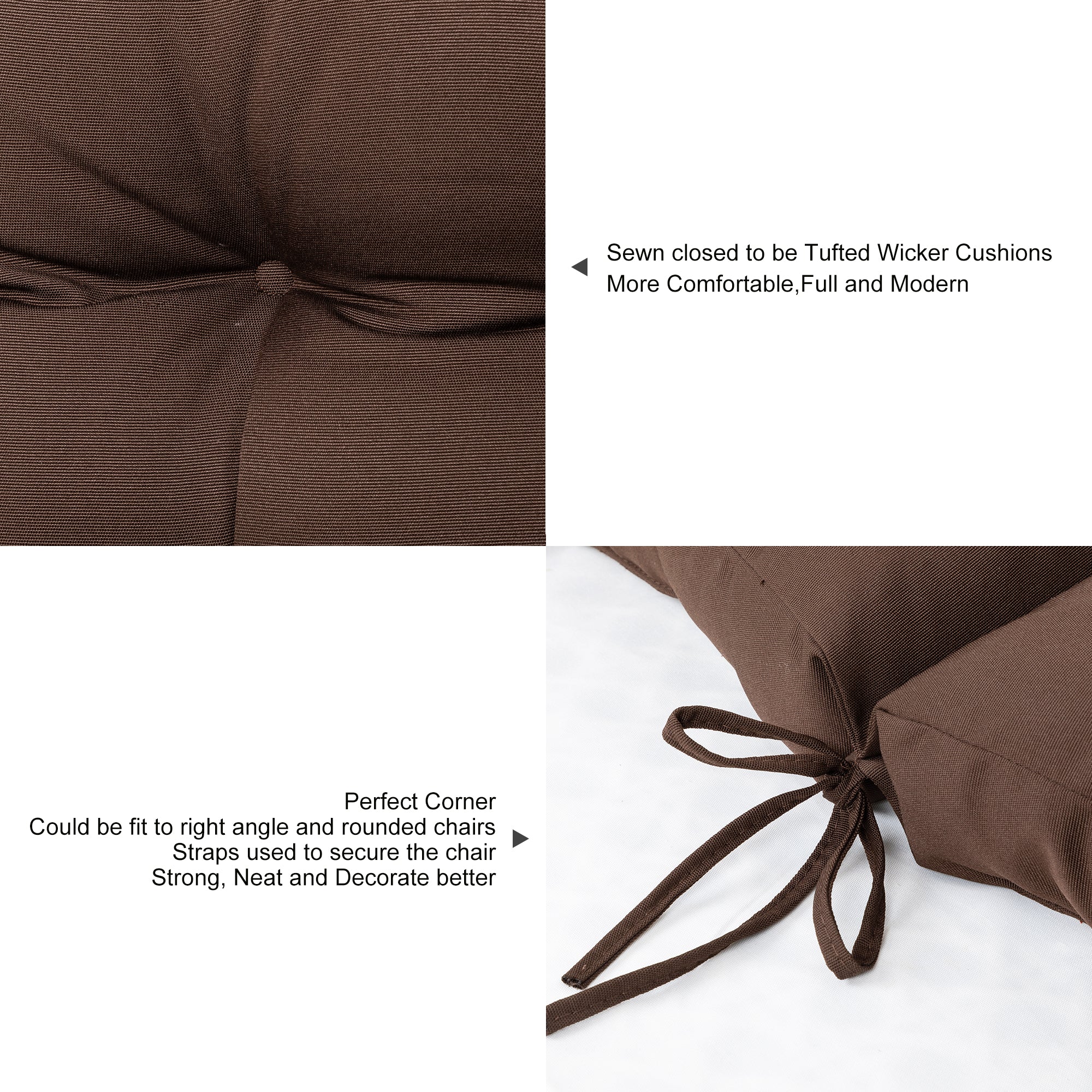 ARTPLANT Outdoor Dinning Seat Pads Cushions with Tie 19"x19"x4",Square Wicker Outdoor Tufted Chair Cushion