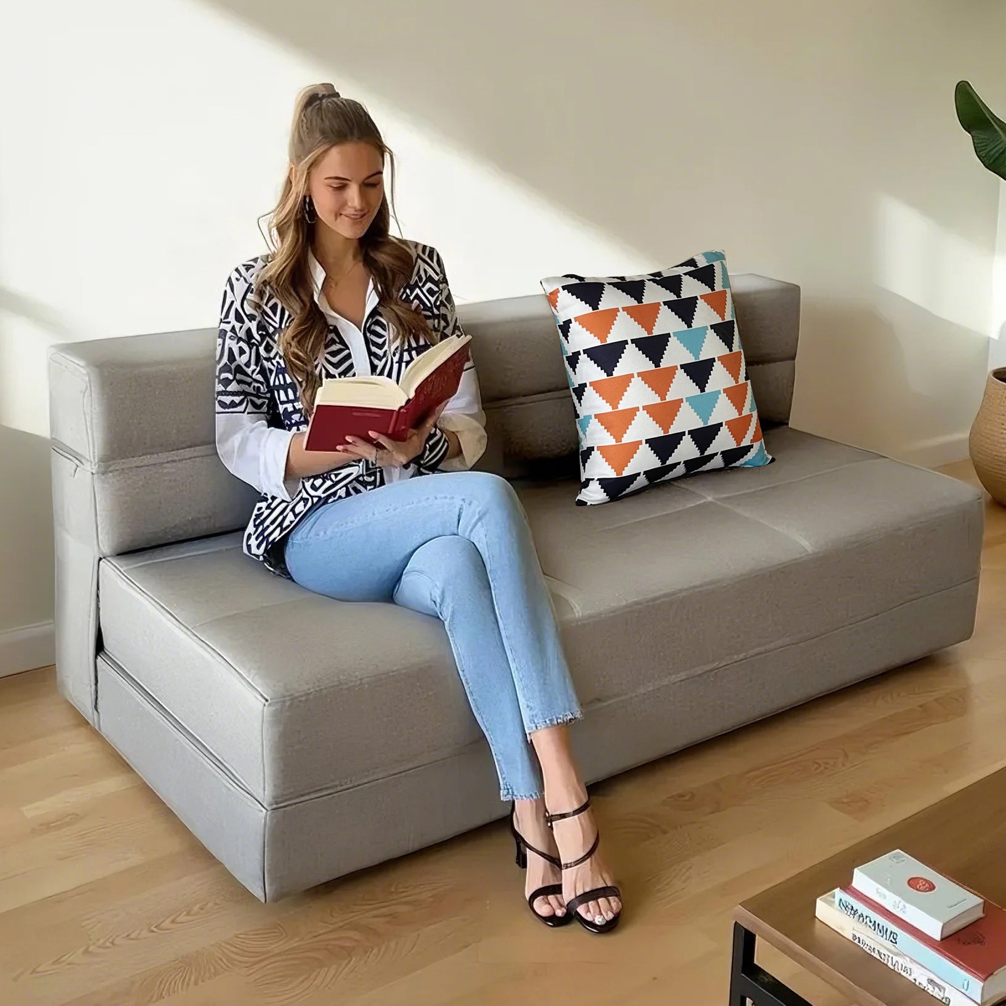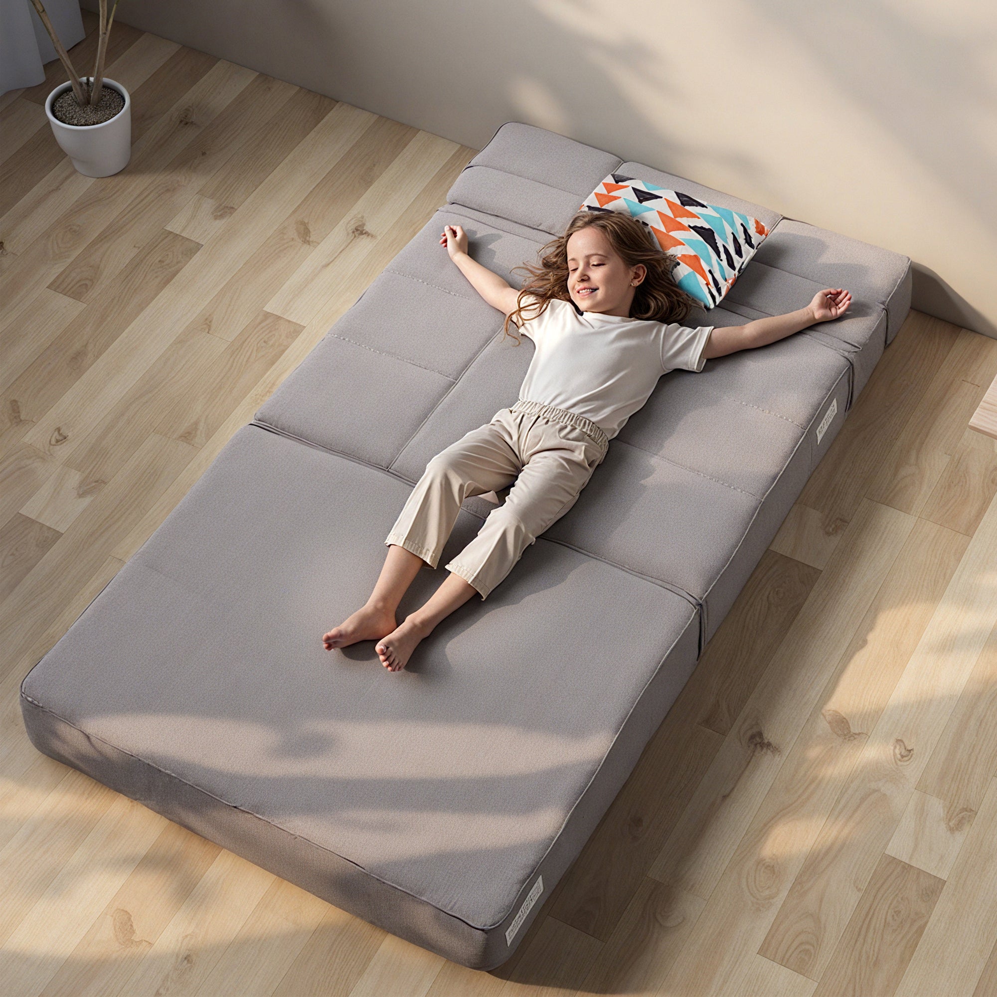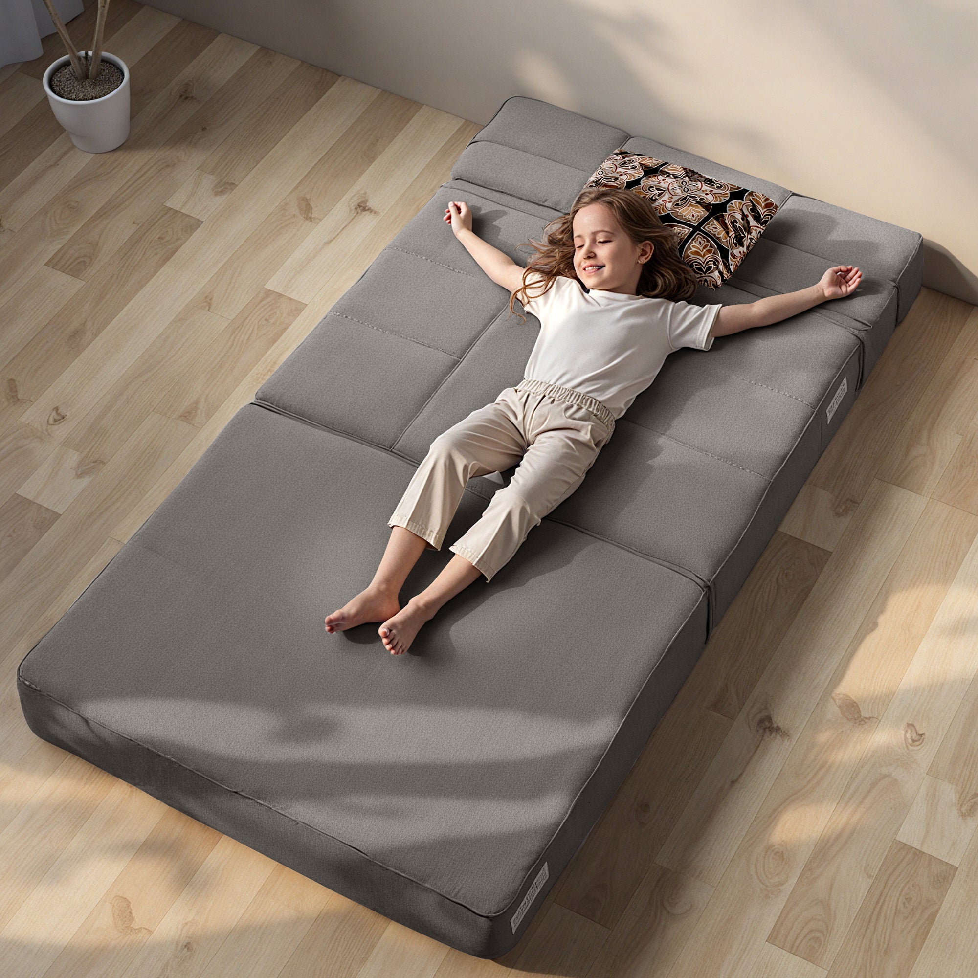Fold Sofa Bed-Sleeper Single with Pillow, Modern Futon Sleeper Chair Guest Bed with Washable Linen Cover, Foldable Mattress for Living Room, Dorm, Apartment